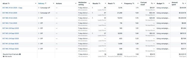 Campaign 2 — Facebook Lead Form Results (Oct 2025):